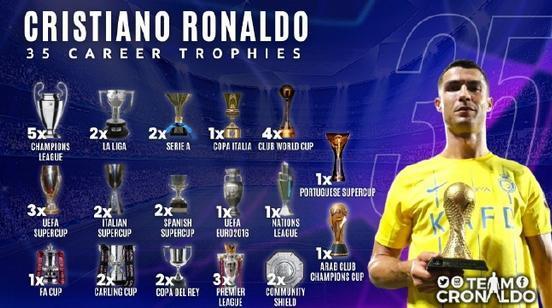 C罗扎心了!阿拉冠奖杯+6场6球数据被去除,冠军数已落后梅西10个