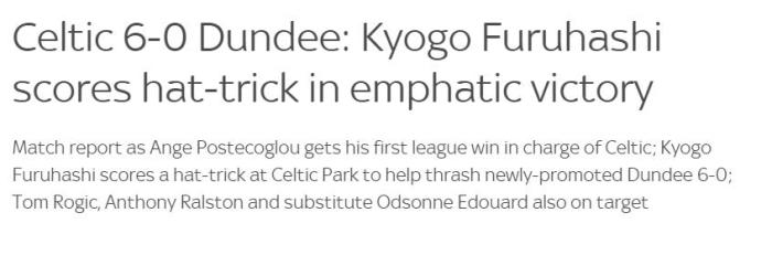 今夏,凯尔特人花费540万欧元从神户胜利船引进了26岁的古桥亨梧,结果他在第二轮联赛中就戴帽。