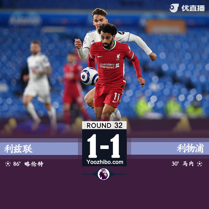 24直播网4月20日讯 北京时间04月20日星期二03:00,英超第32轮利兹联对阵利物浦。上半场,阿诺德助攻马内破门,利物浦半场1-0领先利兹联。下半场,利兹联狂攻,班福德挑射击中横梁,略伦特终场前扳平比分。最终,利物浦客场遭绝平1-1利兹联。利物浦联赛3连胜终结,目前仍位居联赛第六,距离第四有2分差距。
