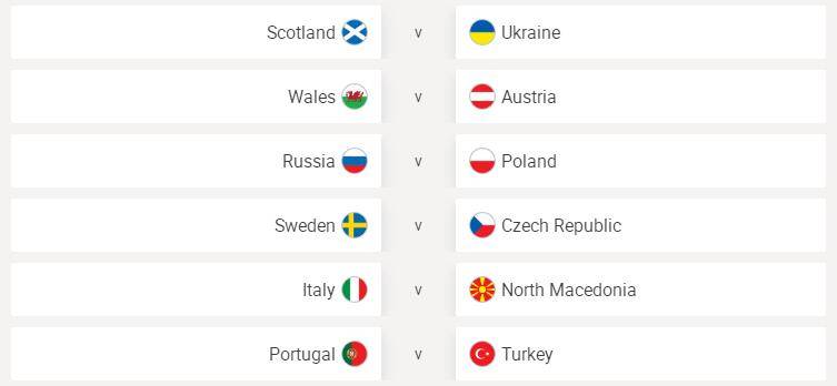 决赛:威尔士/奥地利的胜者 VS 苏格兰/乌克兰的胜者