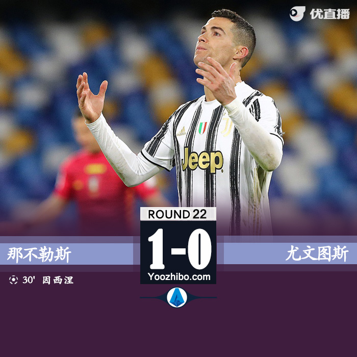 24直播网2月14日讯 北京时间2月14日凌晨1:00,意甲联赛第22轮一场焦点战打响,那不勒斯主场迎战尤文图斯。上半场,基耶利尼送点,因西涅点射破门。下半场,C罗近距离打门被梅雷特没收,莫拉塔打入一球但越位在先。全场比赛结束,尤文客场0-1不敌那不勒斯,联赛三连胜被终结。