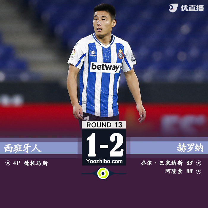 全场比赛结束,西班牙人1-2赫罗纳。