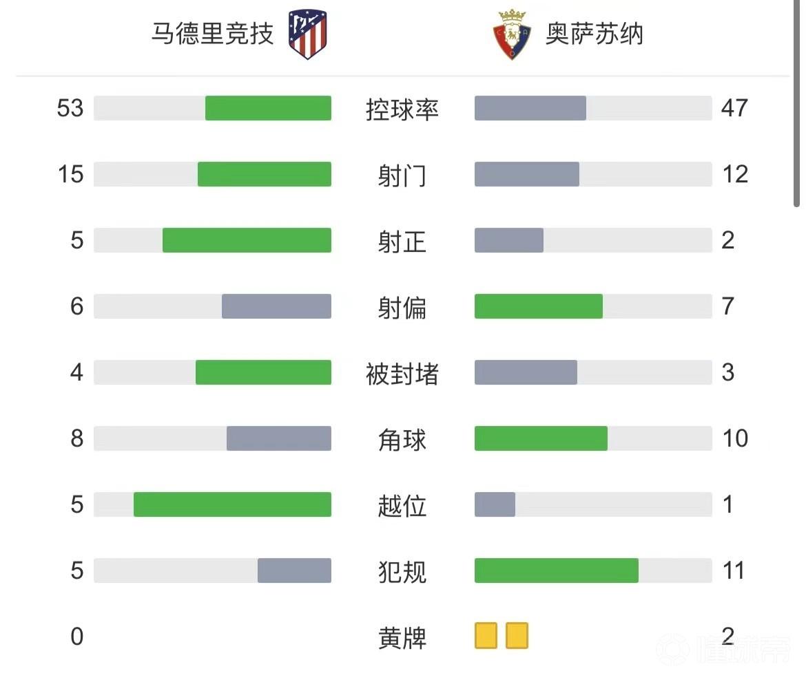 马竞3-0奥萨苏纳 卡拉斯科推射建功萨乌尔科雷亚破门