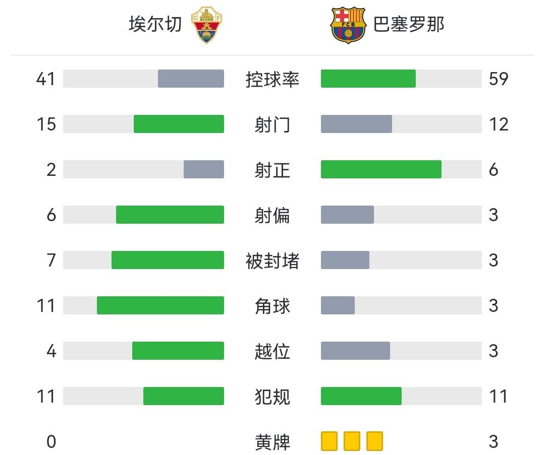 最终巴萨客场4-0大胜埃尔切,巴萨取得联赛四连胜。