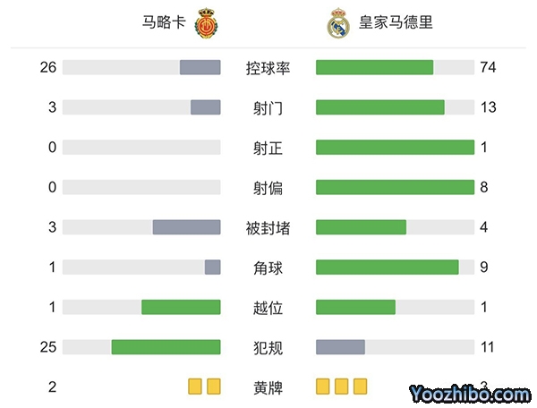 全场比赛结束,最终皇马0-1不敌马洛卡。