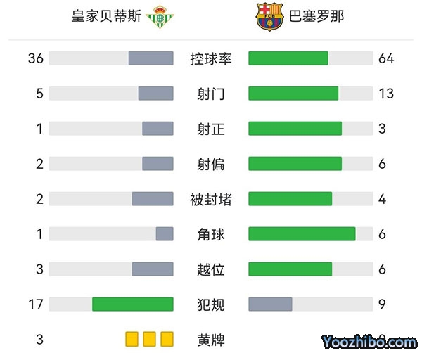 全场比赛结束,最终巴塞罗那客场2-1战胜贝蒂斯!