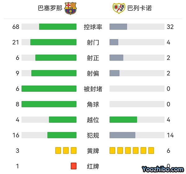 巴萨0-0巴列卡诺 莱万、凯西破门被吹布斯克茨染红