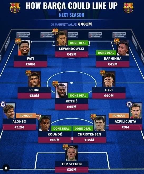 实力已比肩皇马!巴萨主力豪阵曝光:5新援+切尔西2边卫!总价4.81亿