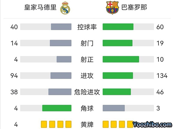 全场比赛结束,巴塞罗那客场4-0大胜皇家马德里。