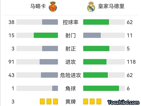 全场比赛结束,皇家马德里客场3-0战胜马洛卡。