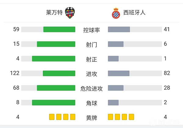 全场比赛结束,全场比赛结束,西班牙人1-1莱万特。
