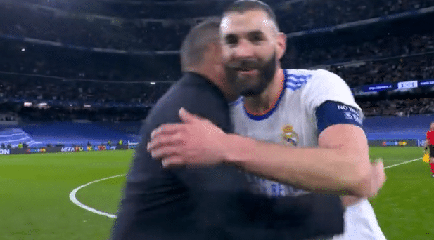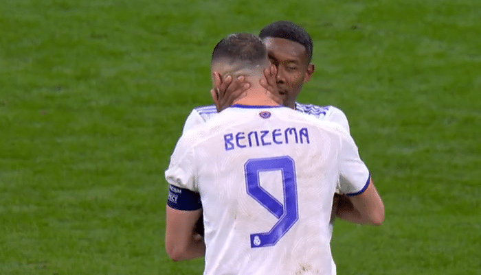 阿拉巴也很兴奋,他上前拥抱,同时耳语本泽马,这场比赛阿拉巴也有不俗的表现,尤其是下半场。