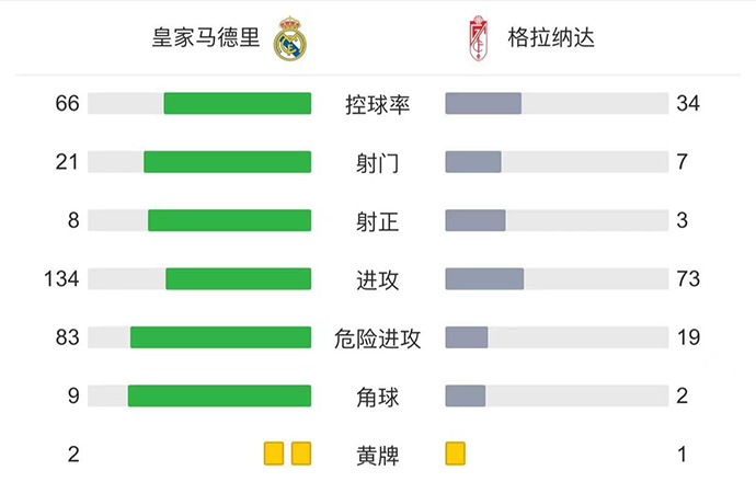 第90+2分钟,阿扎尔倒三角传中,约维奇包抄射门被防守球员封堵。全场比赛结束,皇家马德里1-0格拉纳达。