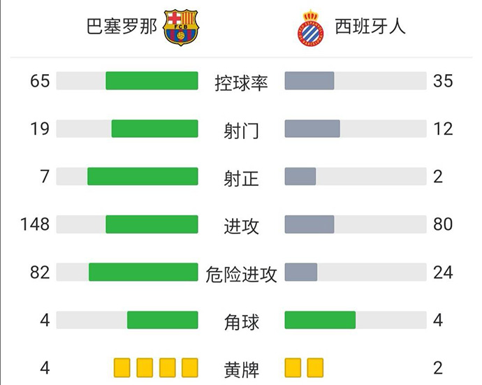 全场比赛结束,巴塞罗那1-0西班牙人。
