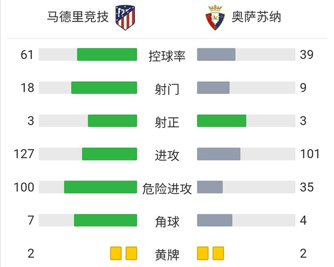 全场比赛结束,凭借费利佩的绝杀,马竞1-0击败奥萨苏纳。