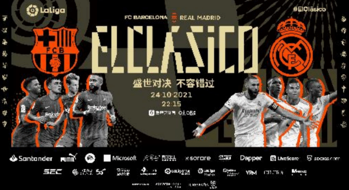 西班牙国家德比以其独特且丰富的历史,在多年来创造了许多难忘的时刻,许多来自世界各地的伟大球员都曾在这个舞台崭露头角,这场持续了近百年竞争的巅峰赛事聚焦了全世界数百万观众。2021/22赛季,西甲联盟推出了全新“ElClásico”品牌标志,为世界上最具代表性和最受欢迎的经典对决之一创造了独特且高辨识度的标识。这一新身份在今年的观赛活动中得到了充分体现,除了享受比赛时刻外,还进一步融入了不仅局限于球迷的体验活动,将足球和街头元素活动与音乐相结合,推动现场达到高潮,西甲球迷在这样的氛围中一同享受比赛,体验了国家德比的激情。