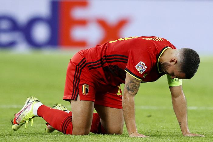 现在这位新C罗已经缩水7500万欧元,权威转会网站“德转”的身价估值只有4000万欧元。在此次国际比赛周,阿扎尔再次出现伤缺的情况,缺席了比利时与意大利的欧国联三四名决赛。根据西班牙媒体“世界体育报”的报道,在欧国联半决赛再次受伤的阿扎尔已经入了皇马的清洗名单,皇马已经对他失去耐心,想要出售他,然后在明夏抢购哈兰德,代表多特蒙德67场狂轰68球的哈兰德已经被皇马高层视为“新本泽马”,认为他是本泽马的完美替代者。