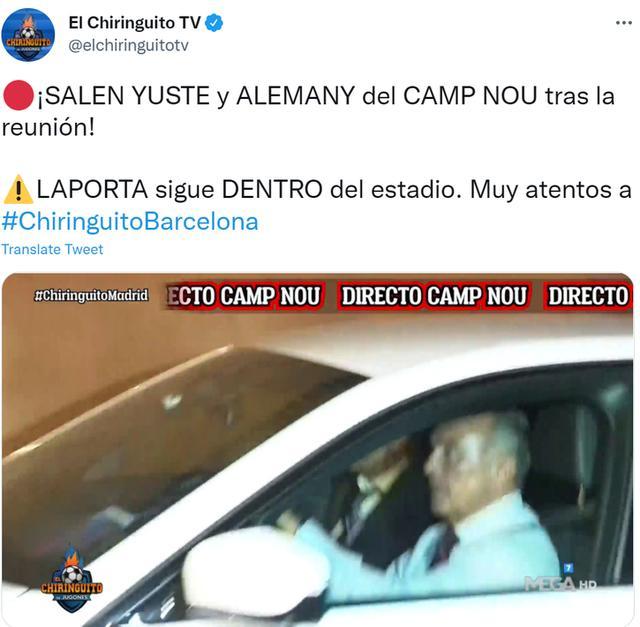 六台称,会议结束后巴萨高层阿勒马尼和尤斯特都已经离开了诺坎普,但拉波尔塔仍留在体育馆内。