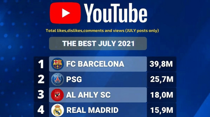 这份榜单是根据Deporte & Finanzas机构联合发布的,其中在推特(Twitter)和油管(YouTube)的数据中,巴萨都是第一名。在推特上,巴萨俱乐部一共收到了1360万次互动,在油管上有3980万次。这些数据都是所有体育俱乐部的第一名,也就是说无论巴萨是发布新闻还是视频,都可以在社交媒体上引发很大的反响,该俱乐部仍然是世界上最受欢迎的俱乐部之一。