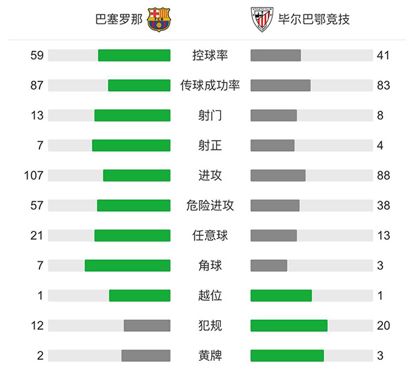 巴塞罗那2-1毕尔巴鄂 梅西任意球破门格子制胜