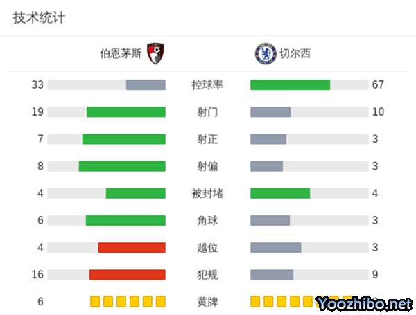 第36分钟,福法纳回传力量太小,埃万尼尔森前插到禁区将球挑起,桑切斯放倒埃万尼尔森,主裁判响哨示意桑切斯犯规,伯恩茅斯获得点球机会,同时桑切斯还吃到黄牌。