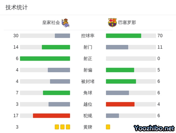 第33分钟,苏西奇头球后蹭,贝克前插获得很好的机会,一脚低射洞穿佩尼亚十指关,皇家社会1-0巴塞罗那。