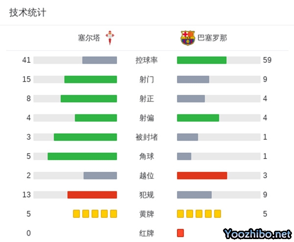 3分钟连丢2球 十人巴萨2-2塞尔塔 卡萨多染红孔德送礼马丁逃红