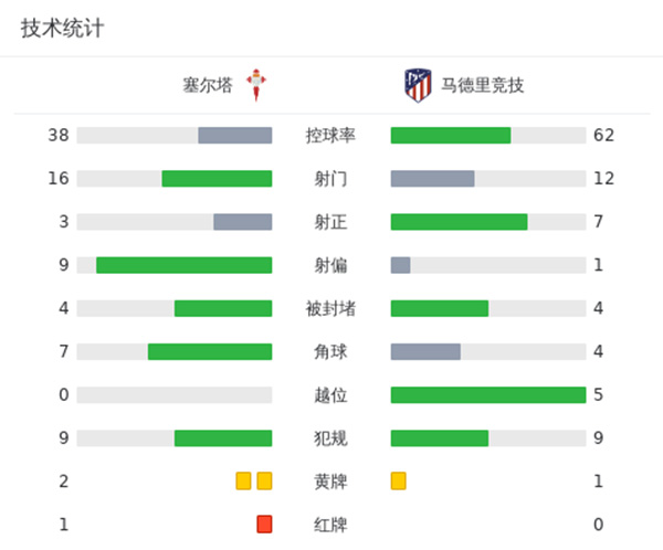 马竞3-0塞尔塔 格列兹曼戴帽莫拉塔造红点