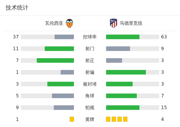 马竞0-3瓦伦西亚 杜罗双响格拉世界波破门