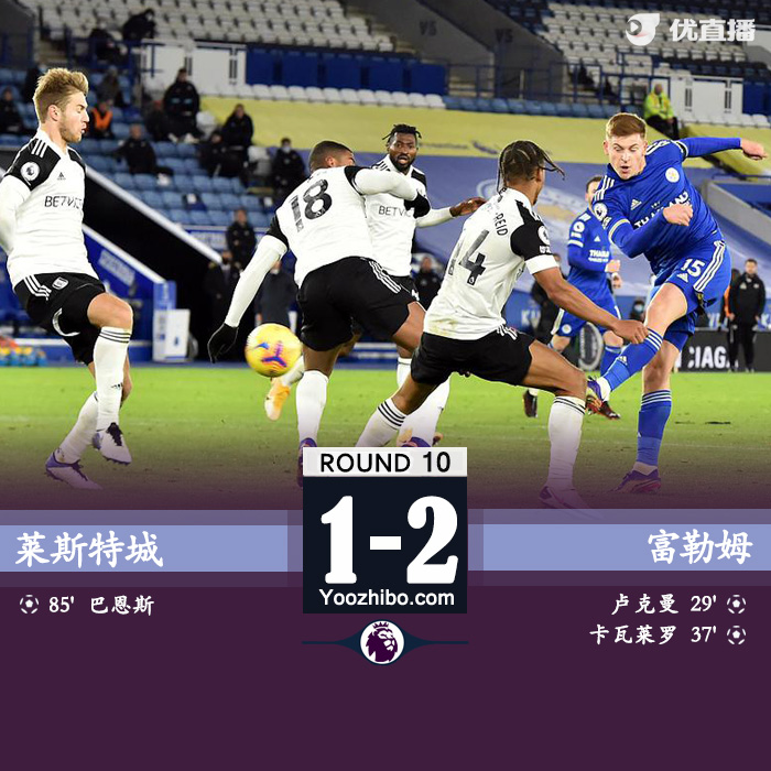24直播网讯:北京时间12月1日1:30,英超第10轮,莱斯特城迎战富勒姆。上半时安古伊萨助卢克曼为富勒姆首开纪录,博比-里德造点,卡瓦莱罗罚进扩大优势。下半时瓦尔迪助伯恩斯追回1球。全场战罢,最终,莱斯特城1-2富勒姆。本场战罢,莱斯特城18分,富勒姆7分。