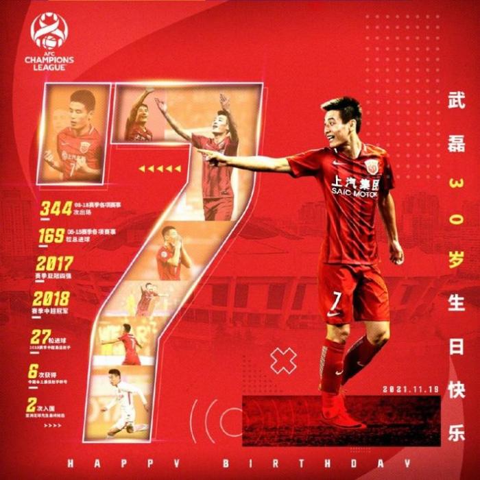 24直播网11月19日讯 亚冠官博写道:“队史中超首冠、跻身亚冠四强、27球斩获中超金靴……从崇明岛走出的青涩少年,现在已是名震亚洲的锋线尖刀。胜广州破水原克东京,难忘那一抹红衫。祝武磊30岁生日快乐!”