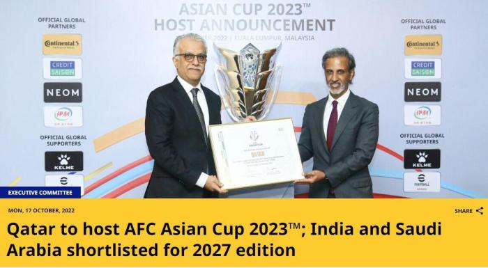 亚足联官方:卡塔尔举办2023年亚洲杯