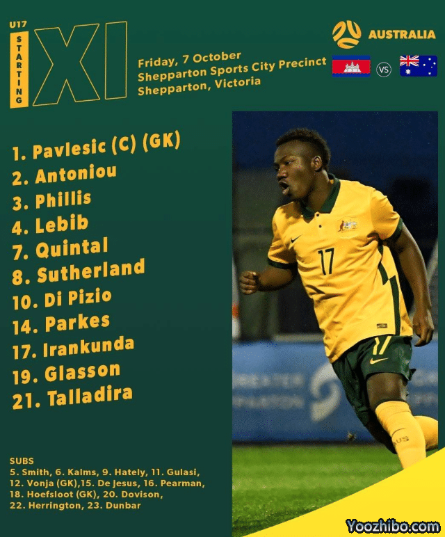 FIFA排名第38、亚洲排名第4的澳大利亚是赛事东道主,预选赛对他们来说没有压力,但是依然严阵以待,没有松懈,用主力阵容应对,力争在正赛前磨合好队伍。首轮比赛,澳大利亚已经以23-0的疯狂比分击败北马里亚纳,他们似乎在为之前的邀请赛爆冷输给柬埔寨的轻敌表现救赎。