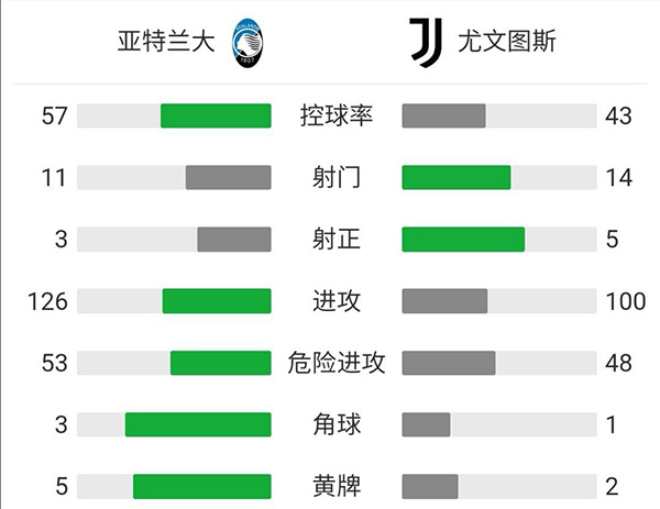 全场比赛结束,尤文2-1战胜亚特兰大,夺得意大利杯冠军。