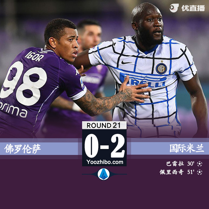 24直播网2月6日讯 北京时间今天3:45,意甲联赛第21轮国际米兰做客挑战佛罗伦萨的比赛准时开始。上半场桑切斯助攻巴雷拉世界波破门,半场国米一球领先。下半场回来,阿什拉夫助攻佩里西奇进球,卢卡库进球被吹,全场结束国米2-0战胜佛罗伦萨。