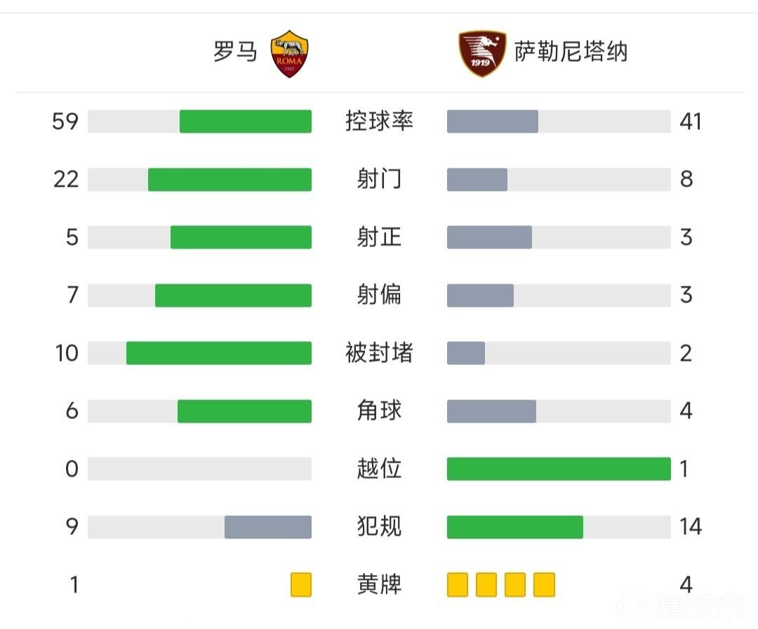 罗马2-2萨勒尼塔纳 沙拉维破门马蒂奇抽射建功