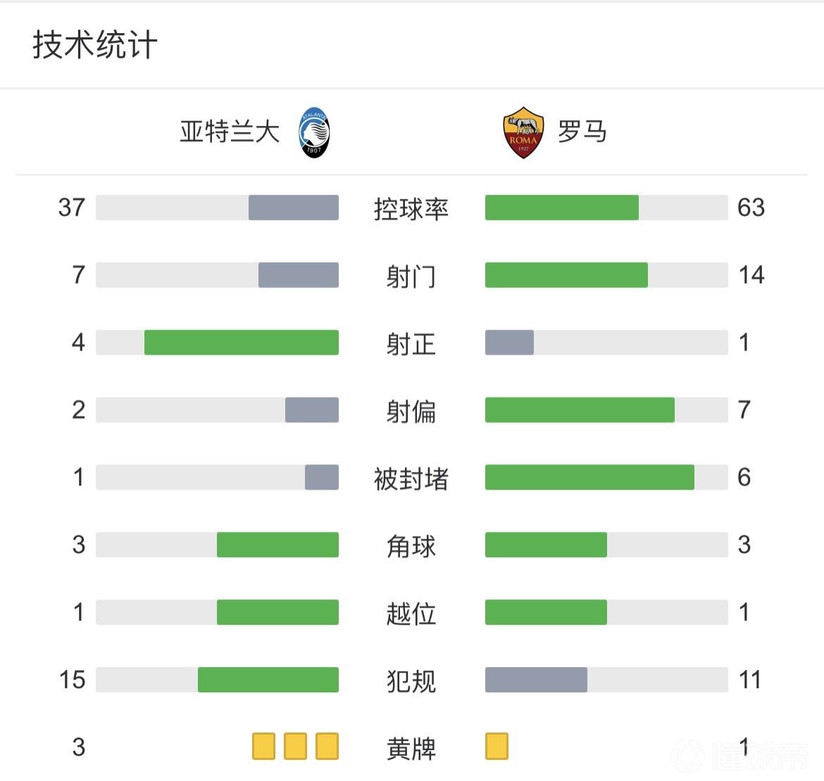 最终全场比赛结束,罗马客场1-3亚特兰大。