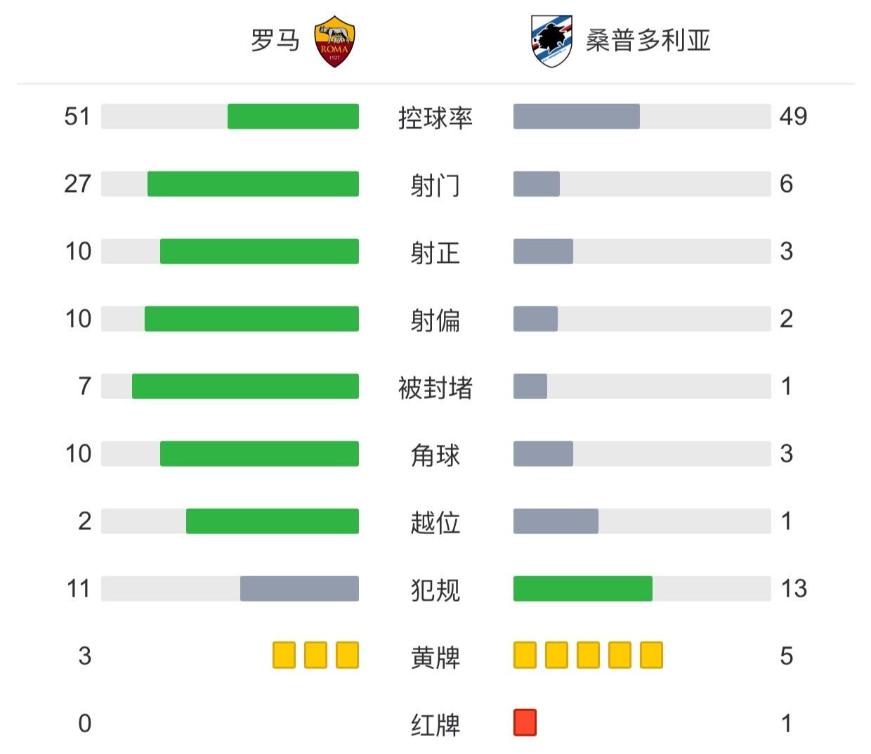 全场比赛结束,罗马3-0桑普多利亚。