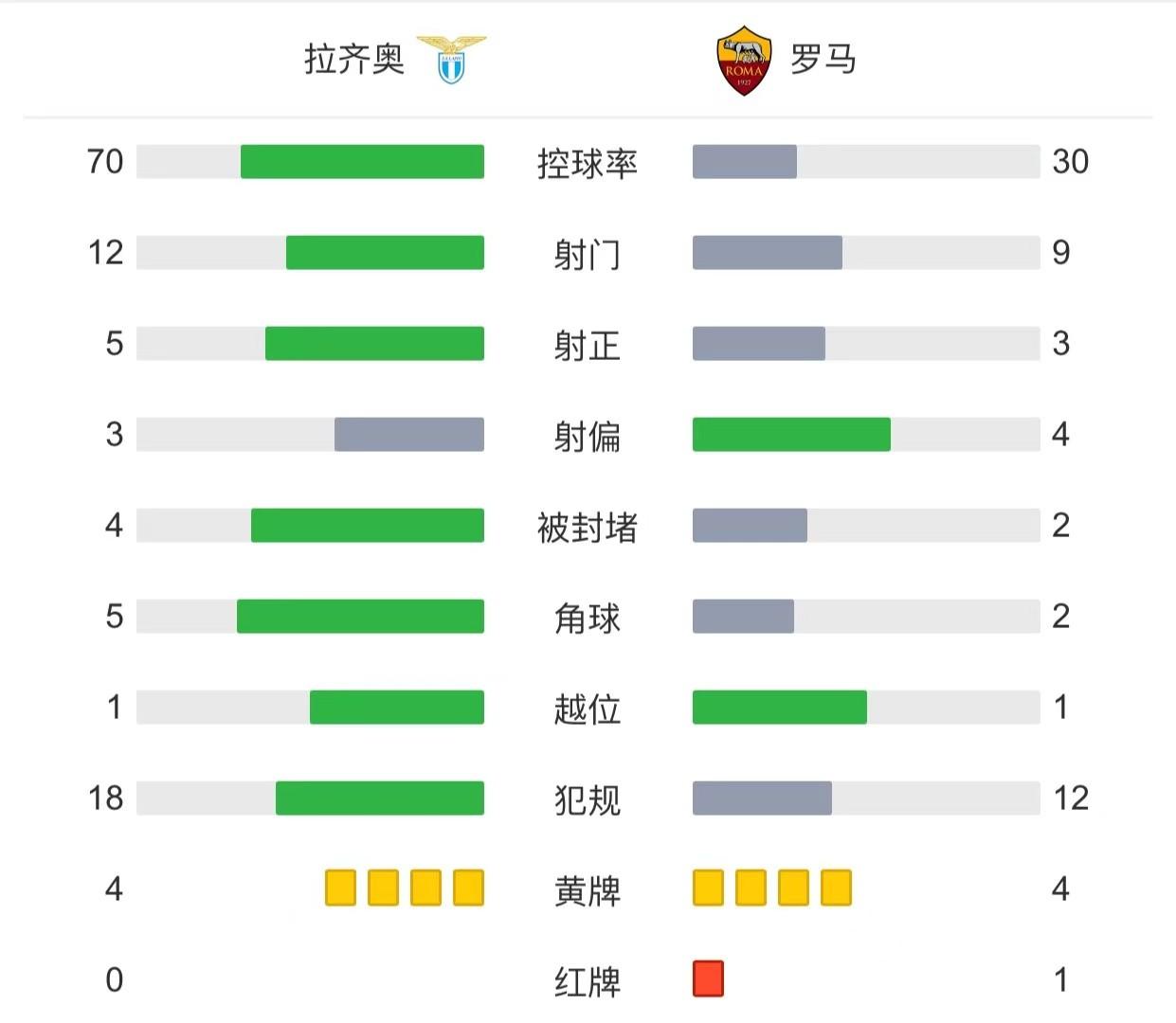 全场比赛结束,拉齐奥1-0罗马!