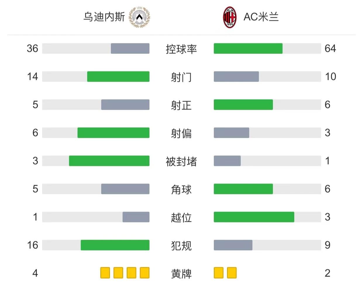 最终AC米兰1-3不敌乌迪内斯,联赛三轮不胜。