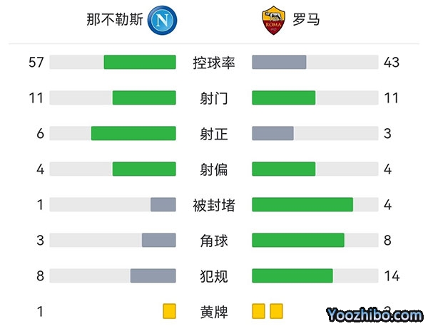 全场比赛结束,最终那不勒斯2-1击败罗马。