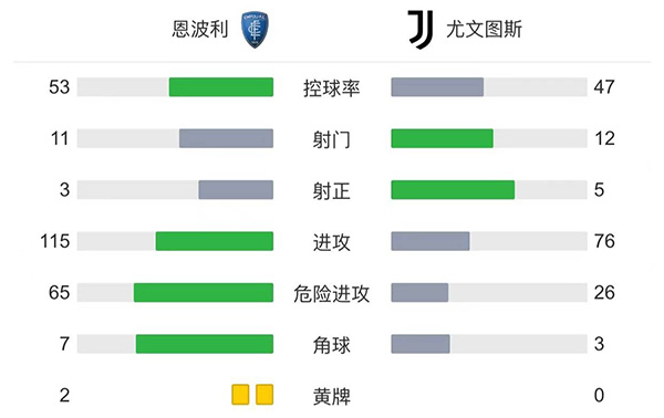全场比赛结束,尤文图斯客场3-2战胜恩波利。