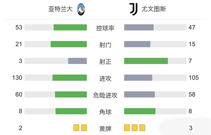 全场比赛结束,最终尤文图斯1-1亚特兰大,仍居第四。