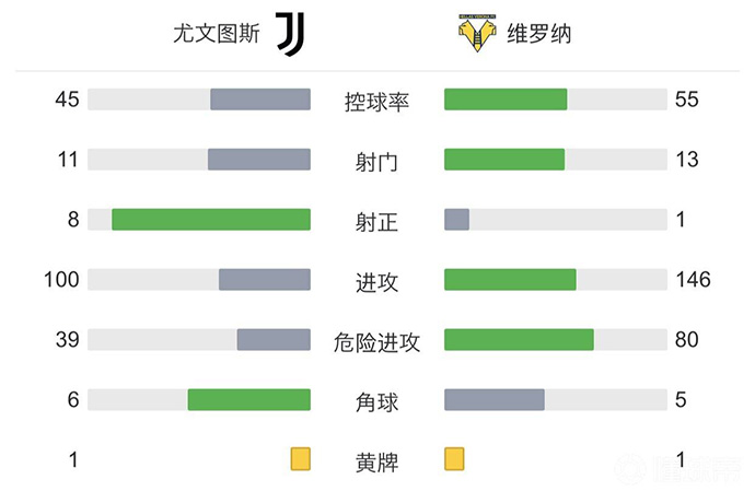 最终全场比赛结束,尤文2-0战胜维罗纳。