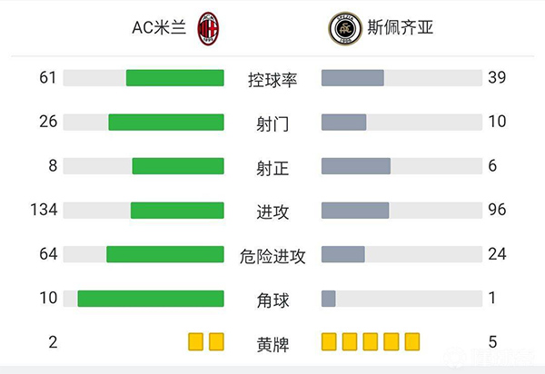全场比赛结束,AC米兰主场1-2不敌斯佩齐亚。