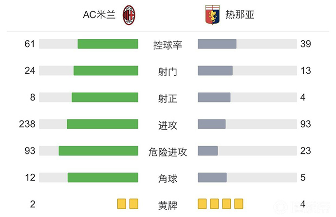 第17分钟,热那亚角球机会,波塔诺瓦将球开出,奥斯蒂加德争顶力压特奥头球破门,热那亚1-0AC米兰。
