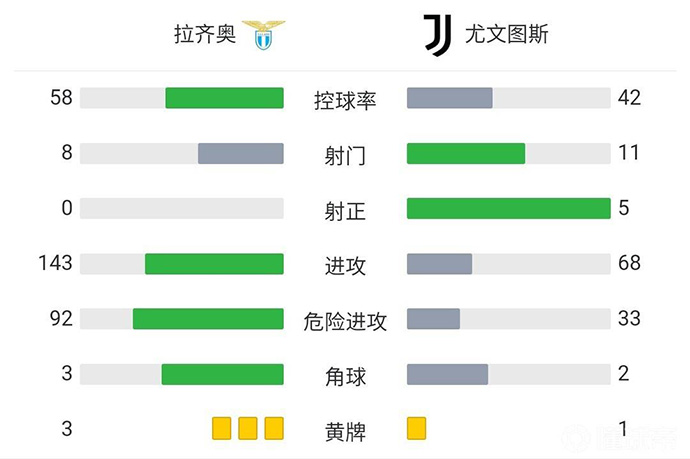 全场比赛结束,尤文在客场2-0完胜拉齐奥。
