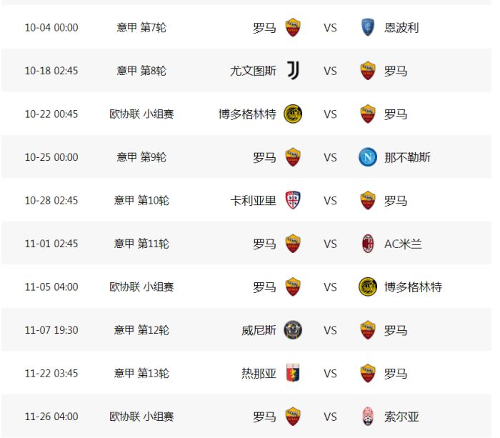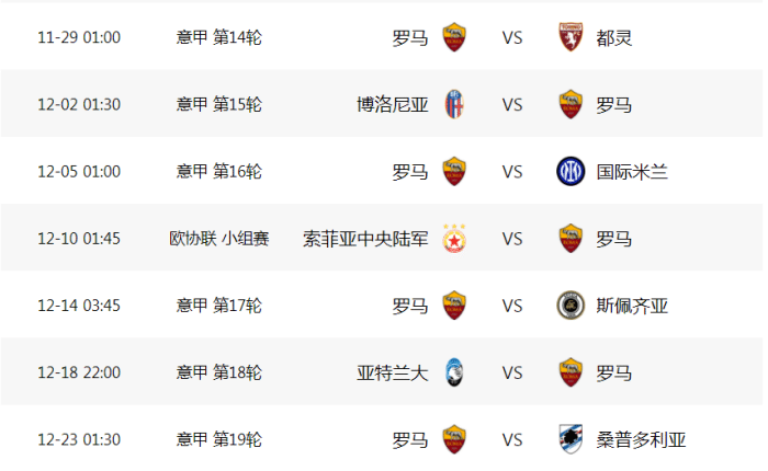 罗马本赛季前半程比赛时间确定:球迷又要开启熬夜模式!