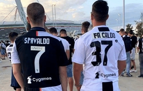 只见有球迷尤文图斯球衣背后的“RONALDO” 改成了“FA CALDO”,意思是太热了,还在7号前加了个3,意为37度,意思就是37度太热了,球迷们用的方法是贴胶布。还有的球迷将名字改“SPAVALDO”,意为“骄傲”或“无理”,用这样的防守等于直接自己定制的一个球衣。