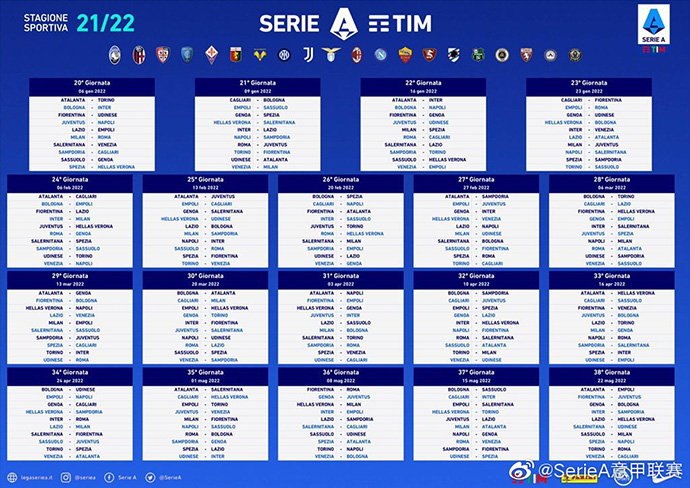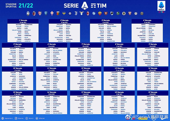 2021-22赛季意甲完整赛程:(点击图片可放大查看)